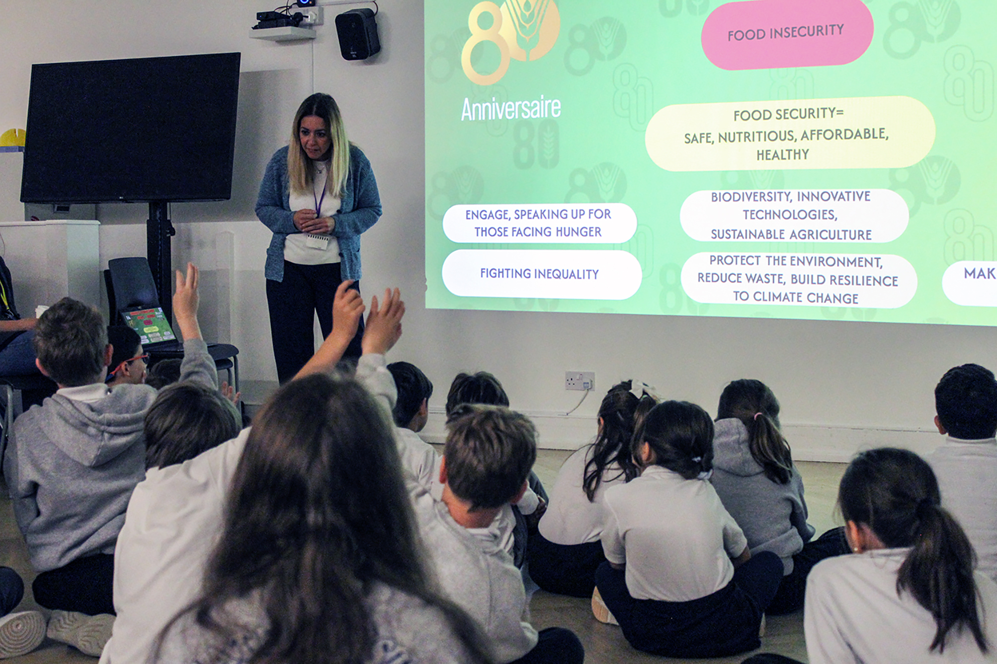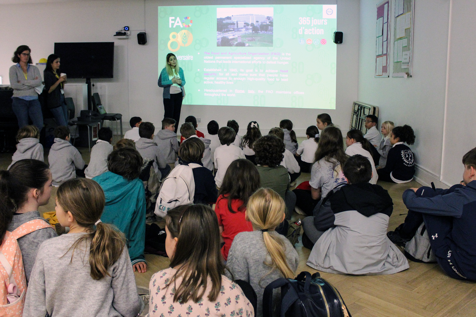 To mark World Food Day and in preparation for our pupils’ visit to the ‘Future of Food’ exhibition at the Science Museum, EIFA Parents Association organised an assembly to talk to our Y4 to Y9 pupils about nutrition. This year, the Food & Agriculture Organization ( FAO) of the United Nations entitled its campaign “Hand in Hand for Better Foods and a Better Future”. It aims at emphasising the importance of global cooperation to ensure that all people, including the younger generations, have access to diverse, nutritious, affordable, and safe food. It was very interesting for our pupils to be able to hear parents talk about their hands-on experiences in this field.